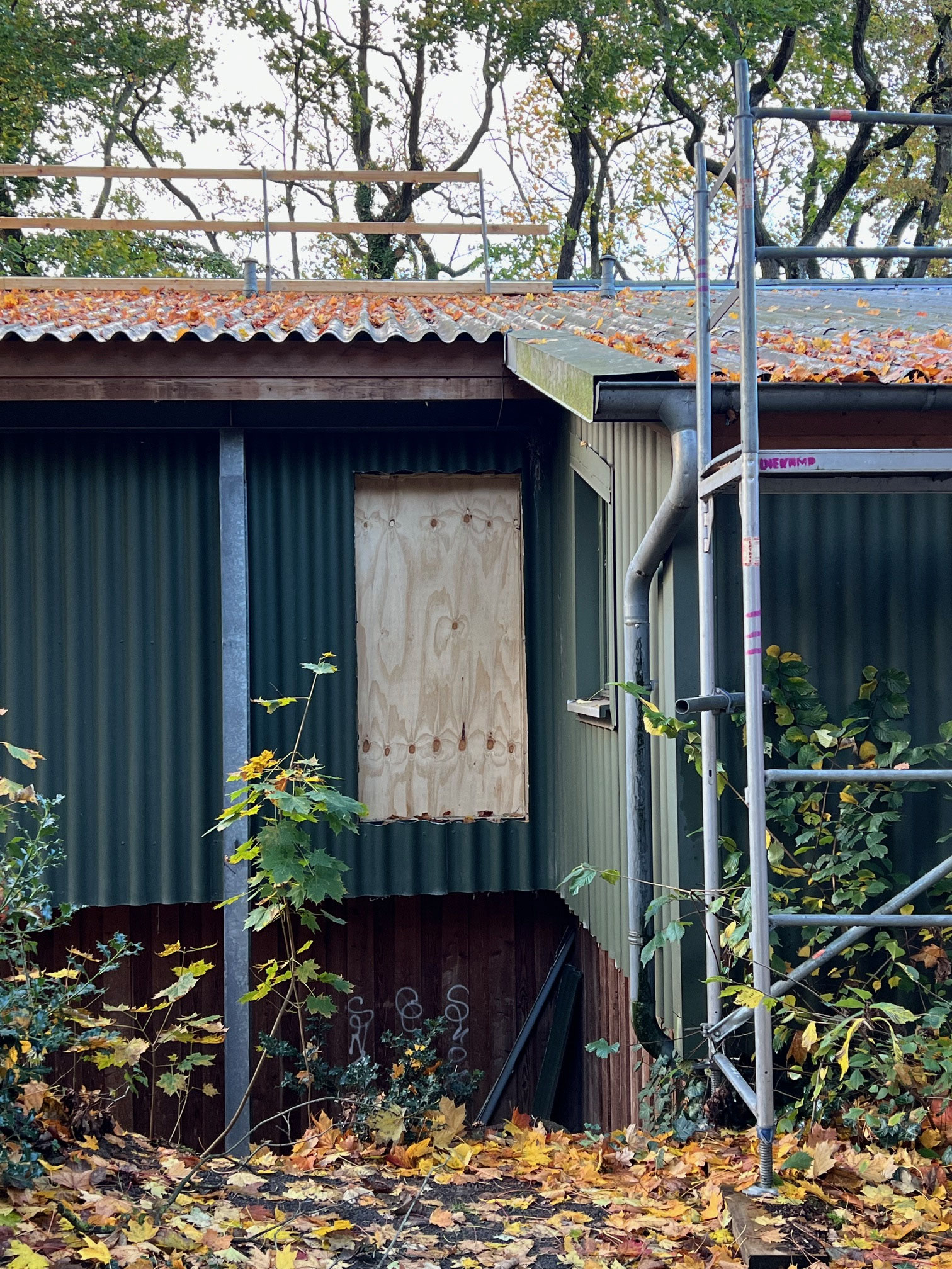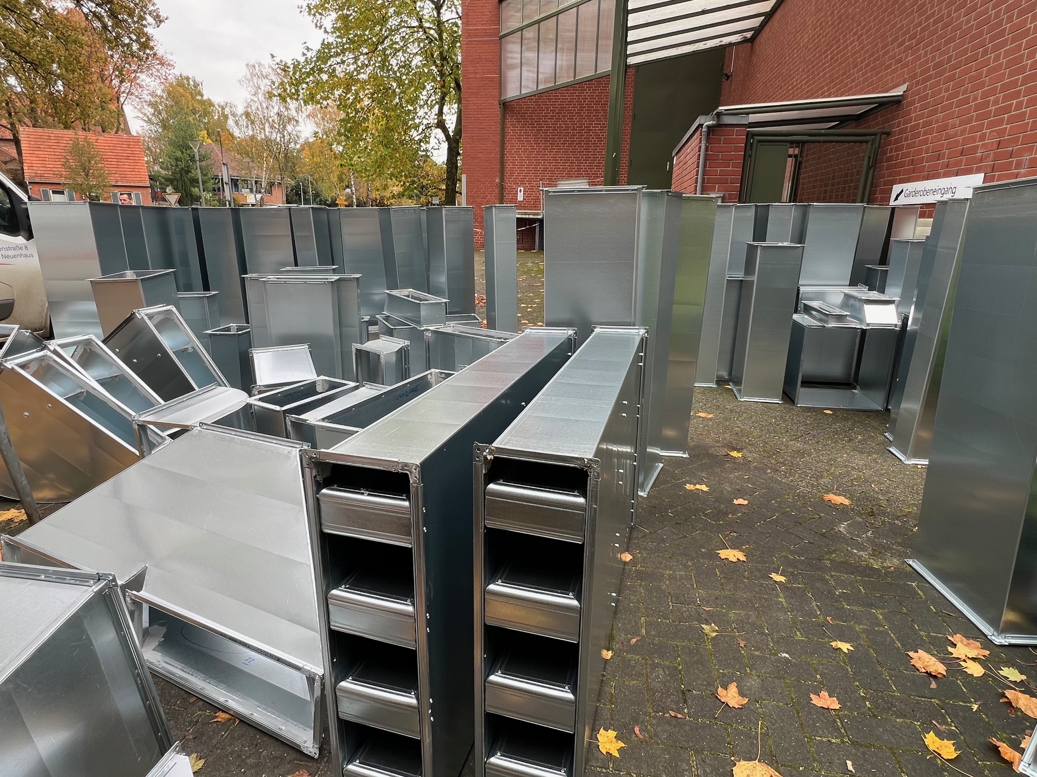 Im Innenbereich hat auch der Trockenbauer seine Arbeit aufgenommen. Ferner wurden alle alten Lüftungselemente demontiert. Zudem sind an mehreren Stellen Wasserleitungen und Abflussrohre erneuert worden. Die neuen Lüftungskanäle sind bereits eingetroffen, ihr Einbau startet in der kommenden Woche. Die neuen Lüftungsaggregate folgen am 6. November 2025 – der Transport ins Gebäude wird eine logistische Herausforderung, für die jedoch bereits eine praktikable Lösung gefunden wurde.