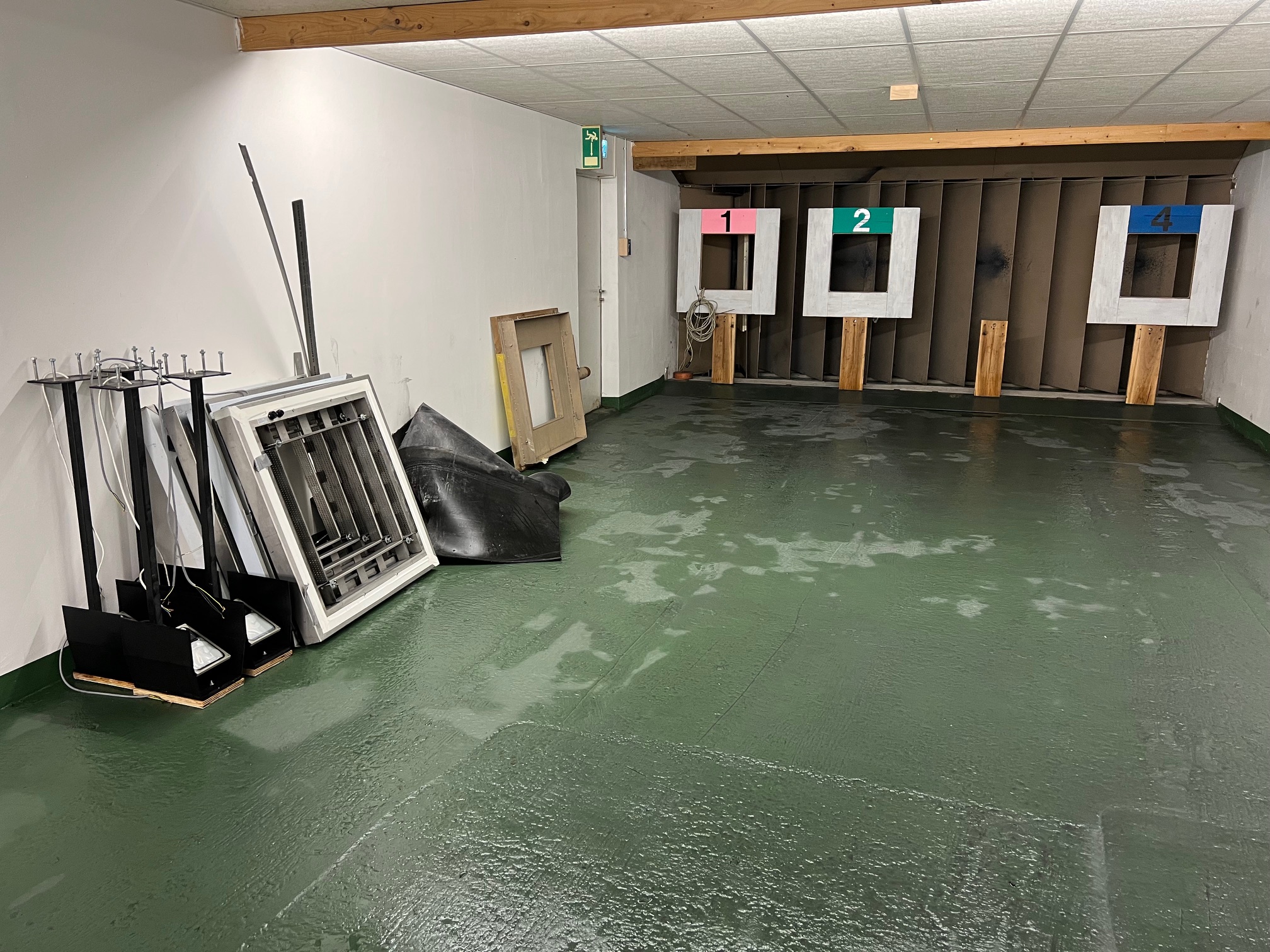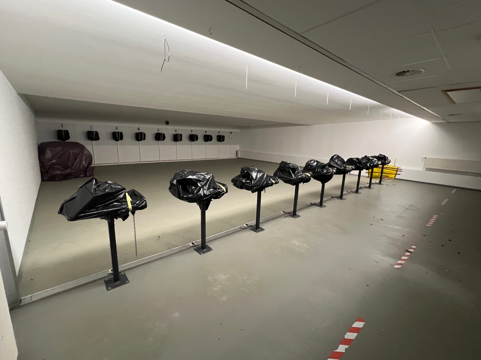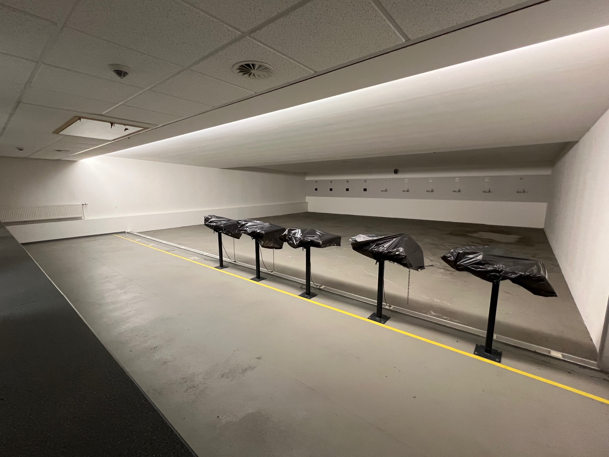 - Neue leistungsstärkere Verdrängungs-Lüftungsanlage incl. Modernisierung der Schießtechnik (Schießscharten, Gel-Granulat-Geschossfänge, Optimierung des verstellbaren Wagens mit der Meyton-Zieleinrichtung, neuer Vorraum im KK-/GK-Stand mit vollständiger Beobachtung aller Schießstände aus dem Vorraum, separate Eingangstür zum GK-Stand, separater Waffenraum (alarmgesichert / Polizei) mit 1 oder 2 neuen Waffenschränken des Wirkungsgrades 1