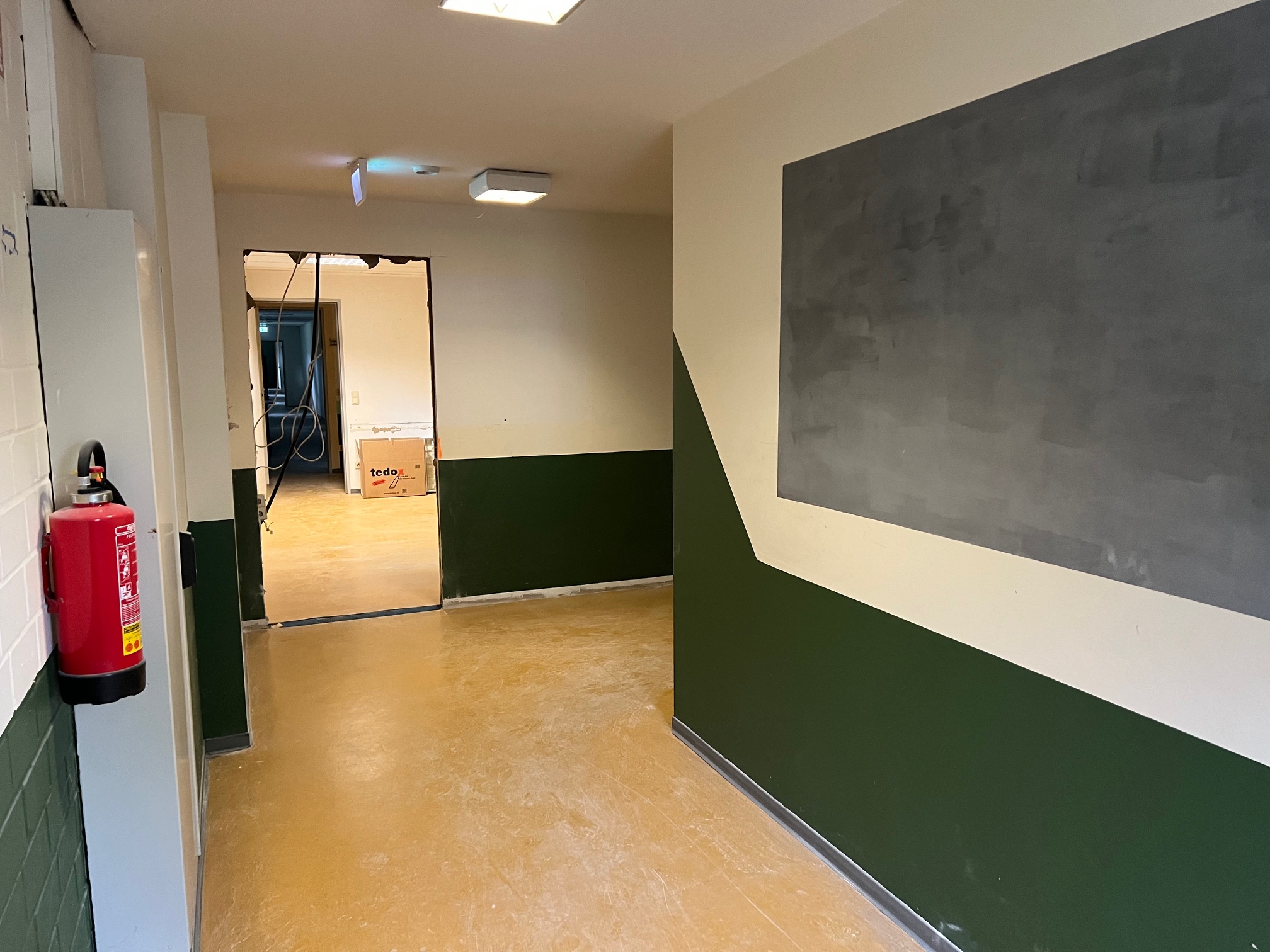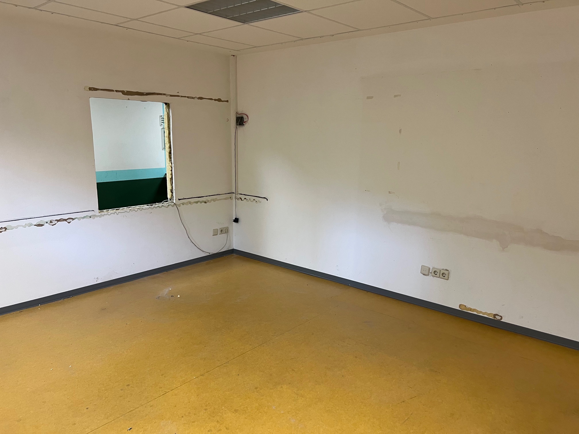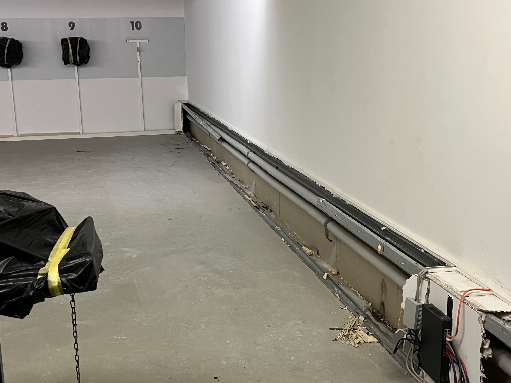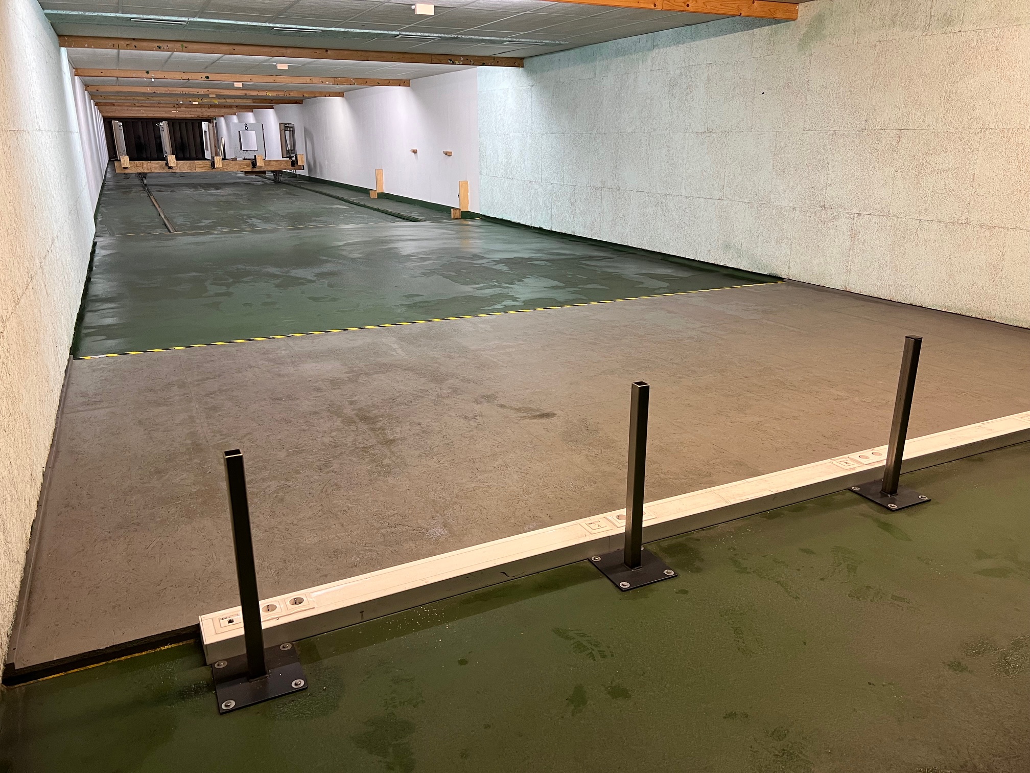 Mittlerweile kann man schon sehen, dass sich einiges verändert, auch an den Räumlichkeiten, z.B. der neue, separate Zugang zum GK-Stand oder das neue Fenster im Vorraum des KK/GK-Standes. Zukünftig können alle Stände vom Steuerungs-PC aus eingesehen werden. Oder auch im bisherigen Auswerteraum, der zum Teil als Behinderten-WC und Getränkeraum umgebaut wird, sind die Türausschnitte bereits freigelegt. Für die Auswertung bleibt aber noch genügend Platz. Auch wurden die alten Versorgungsleitungen freigelegt, damit dort die neuen Versorgungsleitungen für die Lüftungsanlage ebenfalls untergebracht werden können.